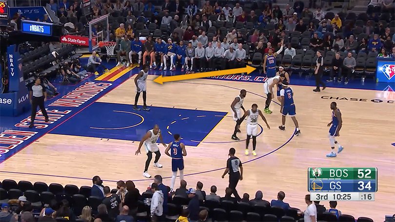 En pratique, les Celtics éloignent ainsi un maximum Robert Williams de la défense sur le pick-and-roll, laissant cette responsabilité à Al Horford ou Grant Williams, davantage capables de gérer les changements défensifs sans laisser de décalages. Le “Timelord” peut donc se concentrer sur ce qu’il sait faire de mieux, à savoir rester constamment en deuxième rideau pour intimider les adversaires qui rentrent dans la peinture, et contrer des tirs grâce à ses qualités physiques, son sens du timing et sa vitesse pour décoller vite et haut.