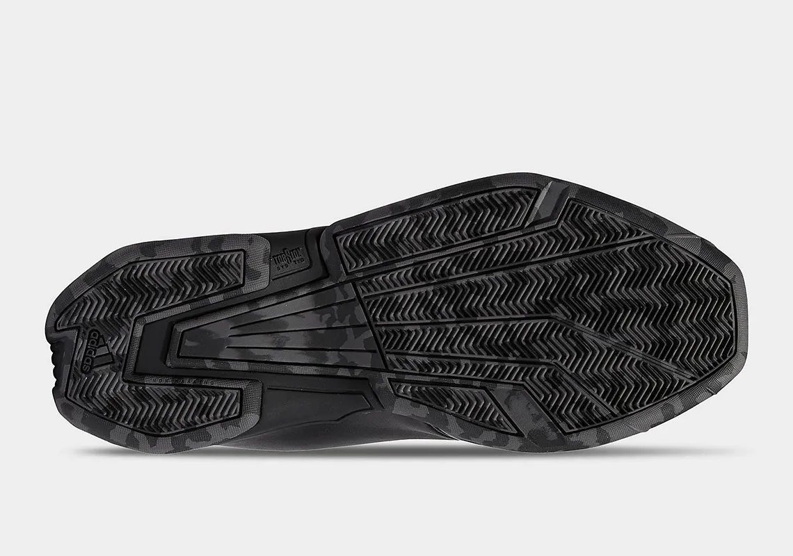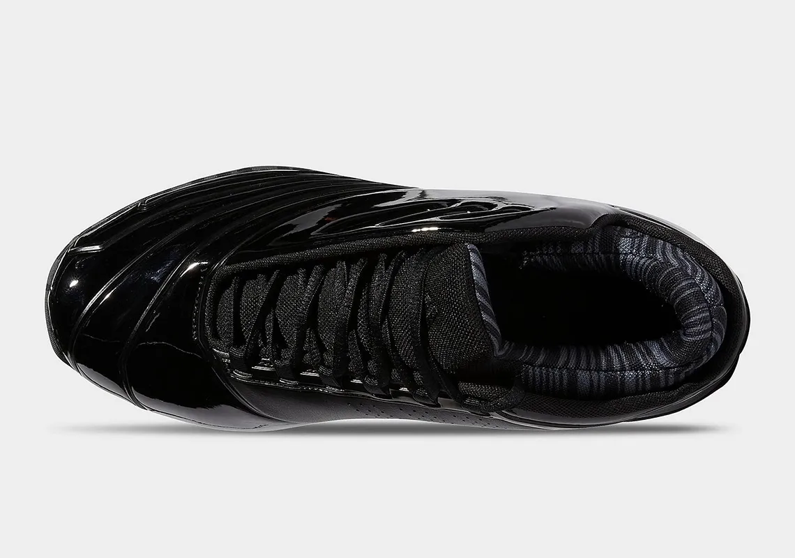 Cette version est habillée d'un cuir verni noir sur l'ensemble de la tige reposant sur une semelle « camouflage » en noir et gris.