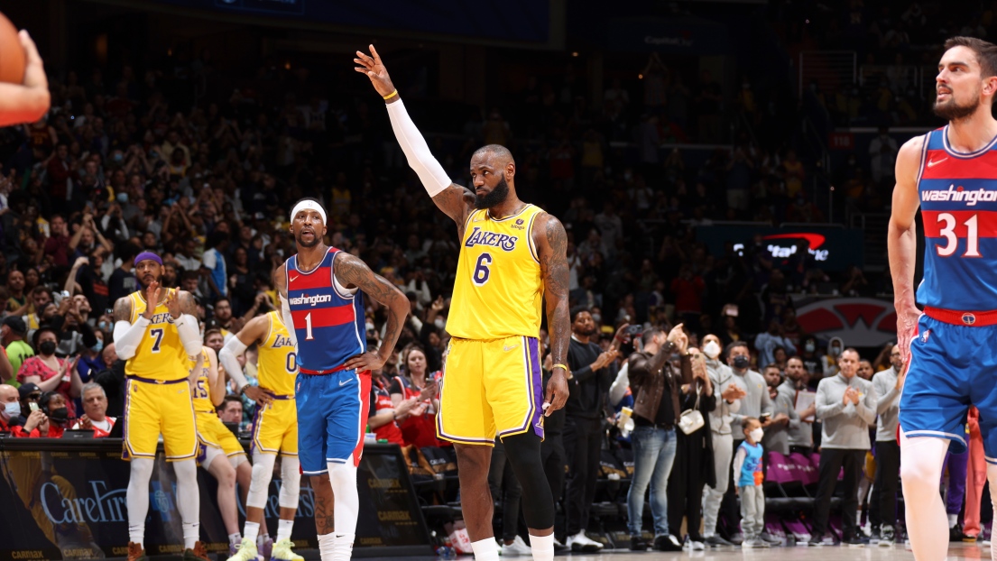 Les Lakers ont encore perdu, mais LeBron James n’oubliera pas cette soirée du 19 mars 2022 puisqu’il est devenu sur le parquet de Washington le 2e meilleur marqueur de l’histoire de la NBA. Avant le match, l’ailier des Lakers avait besoin de 20 points pour dépasser les 36 928 points de Karl Malone et il a largement atteint l’objectif puisqu’il termine la rencontre face aux Wizards avec 38 points !