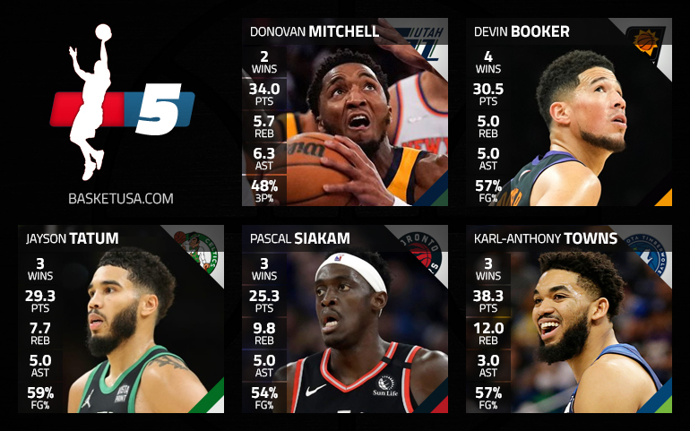 Bien sûr, l’exemple le plus marquant est Phoenix, qui enchaîne toujours les victoires sans Chris Paul, grâce à un Devin Booker plus présent que jamais. À ses côtés sur le backcourt, on a beaucoup hésité entre Jaylen Brown et Donovan Mitchell, mais l’arrière du Jazz a marqué les esprits face aux Bulls et aux Knicks.