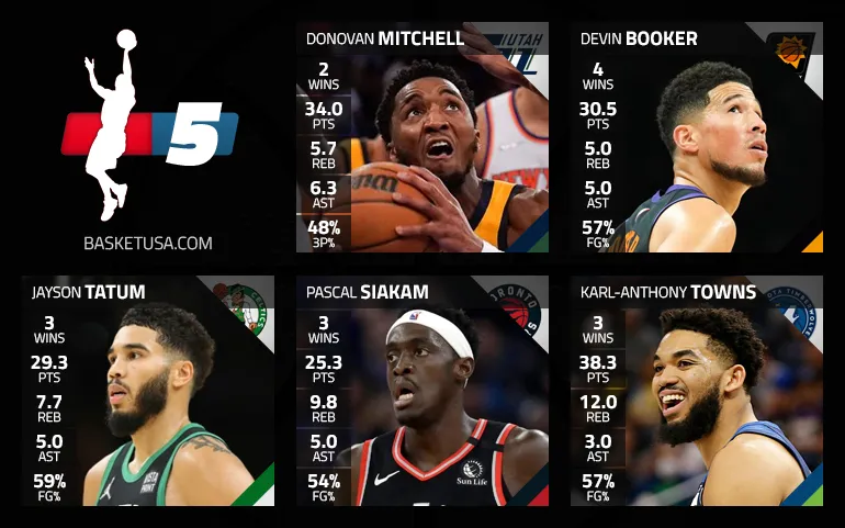 Sur les ailes, impossible par contre de zapper l'autre Celtic, Jayson Tatum, plus patron que jamais pour les C's. Pour l'accompagner, on met en avant la forme de Pascal Siakam et des Raptors, malgré les performances toujours notables de Giannis Antetokounmpo ou encore Kevin Durant.
