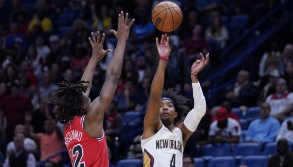 Outre les tauliers que sont Jonas Valanciunas (16 points, 19 rebonds) et CJ McCollum (25 points, 6 passes), ce sont Devonte’ Graham (30 points – record de saison) et Jose Alvarado (15 points, 7 passes) qui ont fait la différence alors que Zach LaVine (39 points) a manqué de soutien, si ce n’est celui de Coby White (23 points) en sortie de banc et de Nikola Vucevic (16 points, 9 rebonds) parmi les titulaires…