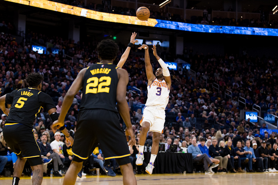 – Balles perdues et maladresse, l’équation de la première mi-temps. Si les deux équipes sont rentrées aux vestiaires au coude à coude, elles auraient toutes deux pu espérer mieux. Après leur bon début de match, les Suns ont continué de se procurer de nombreux tirs ouverts mais ils ont raté 17 de leurs 21 tentatives de loin. Ils avaient cependant un avantage de deux points car ils ont dominé le rebond offensif et parce que les Warriors n’ont pas su profiter de leur maladresse. Les hommes de Steve Kerr ont perdu 14 ballons en première mi-temps et avaient un pourcentage quasi similaire près du cercle (42%) qu’à 3-points (41%). Ainsi, leur adresse de loin a compensé leurs ballons perdus mais ces derniers ont permis à Phoenix de tirer 13 fois de plus qu’eux. Et même si les Suns ont été plus maladroits (36%), leur volume de tir leur a donné l’avantage au score.