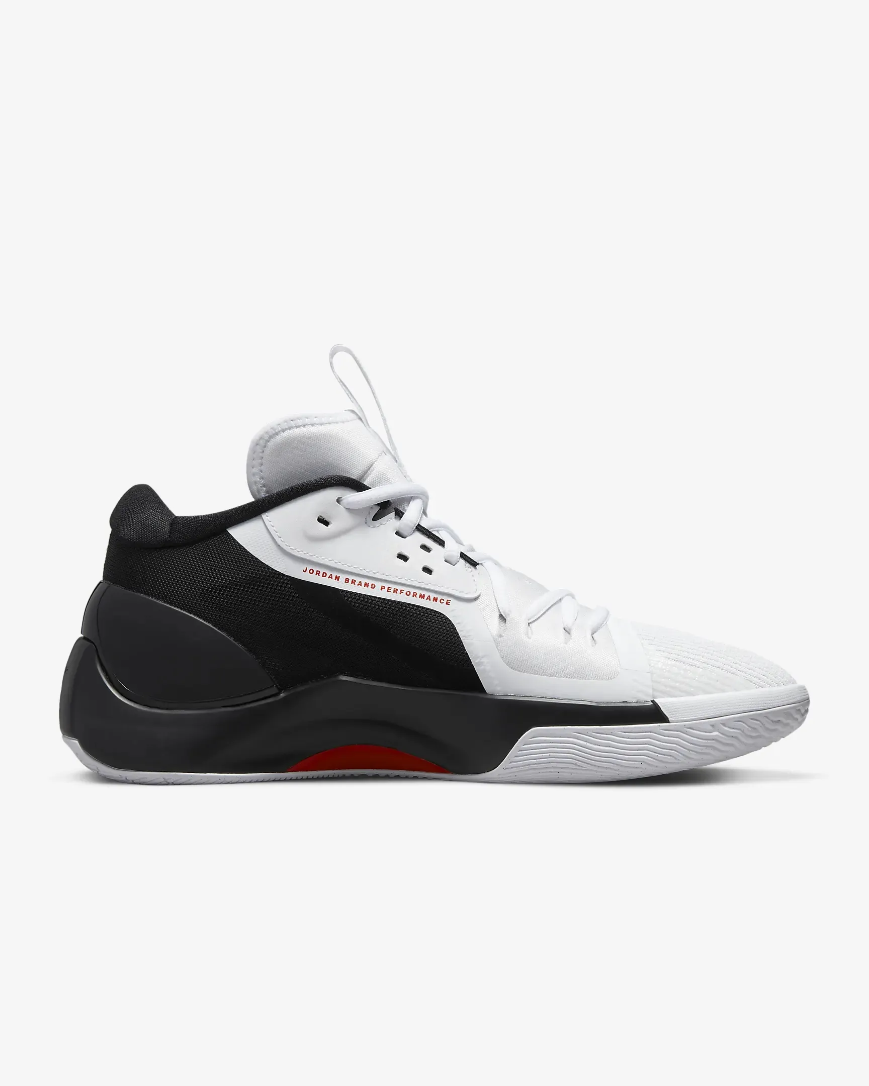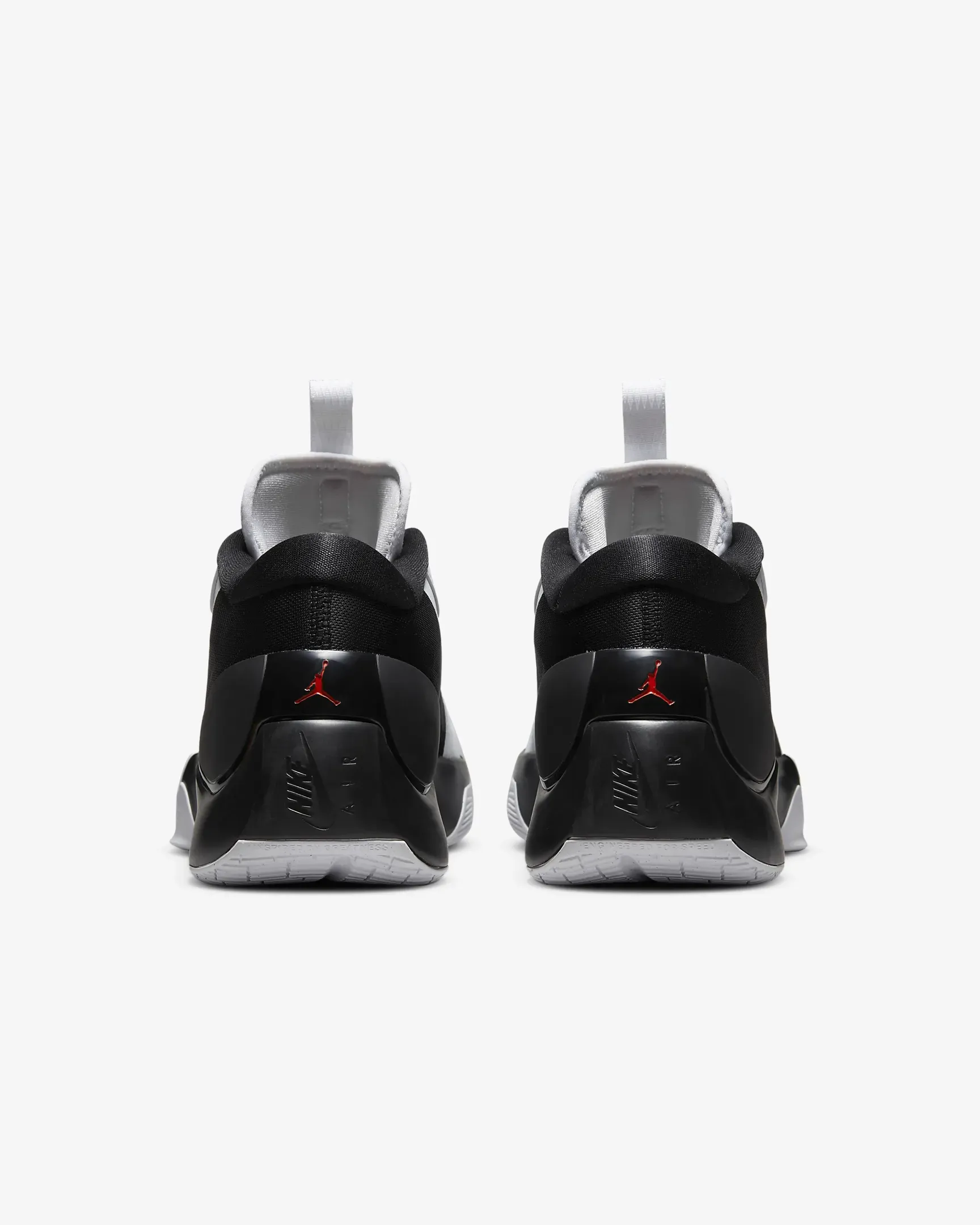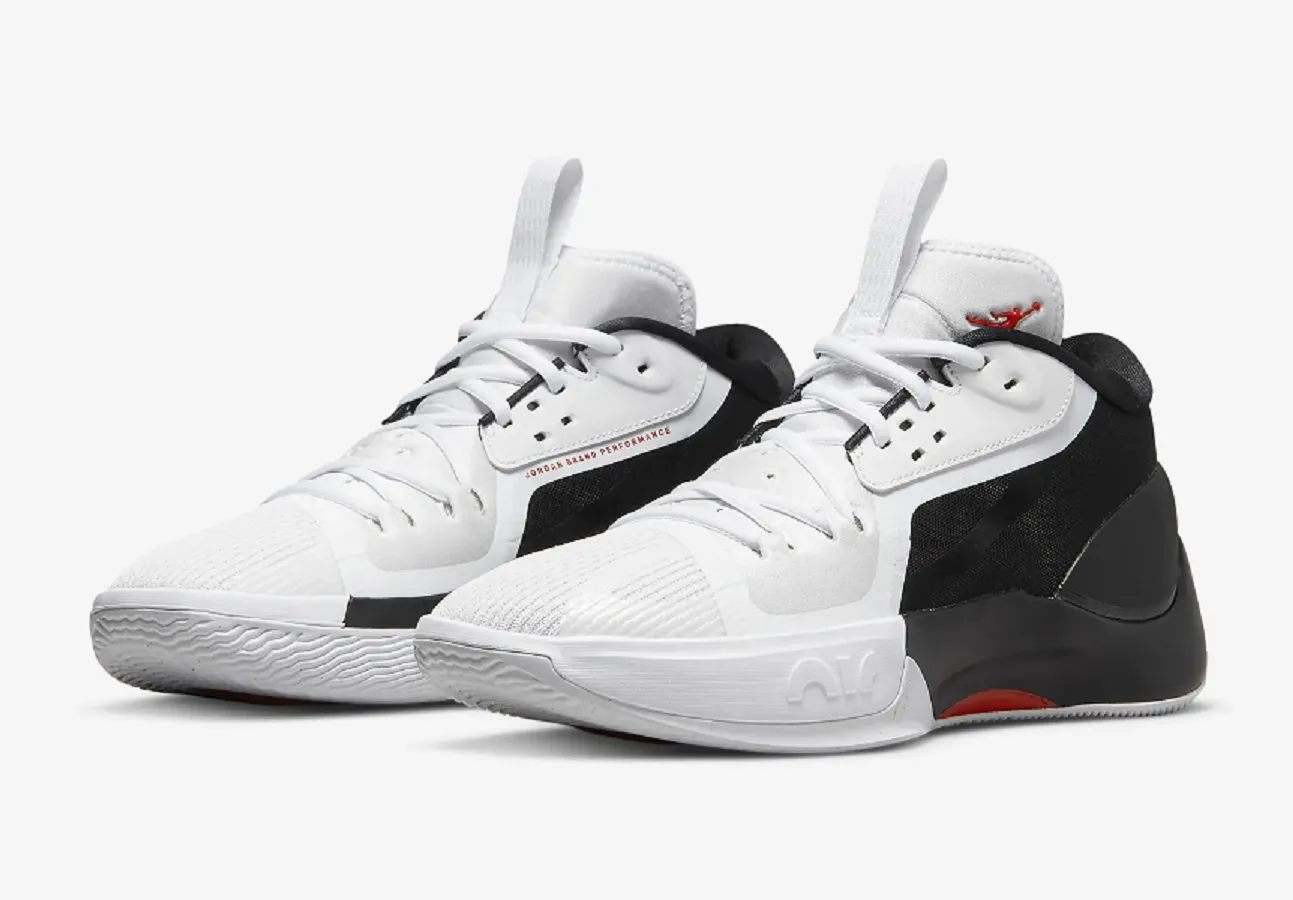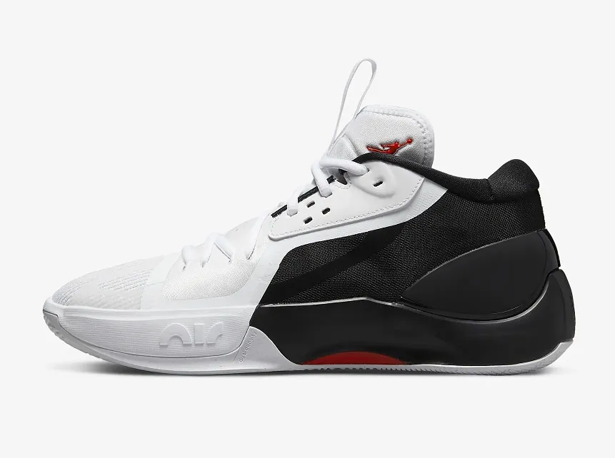 La tige est habillée en blanc à l'avant et en noir à l'arrière, l'ensemble étant ponctué de touches de rouge comme sur le « Jumpman » placé sur le talon sur fond noir, ou sur fond blanc sur la languette.