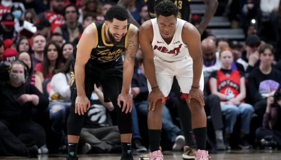 Épaulé par Max Strus (23 points), Victor Oladipo (21 points), Tyler Herro (18 points, 8 rebonds et 8 passes, mais 8 pertes de balle) ou encore Bam Adebayo (16 points, 9 rebonds), Kyle Lowry a ainsi joué un vilain tour à ses anciens coéquipiers, emmenés notamment par Fred VanVleet (29 points, 7 passes, 3 interceptions) et Pascal Siakam (29 points, 9 rebonds, 5 passes).