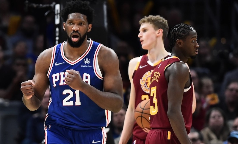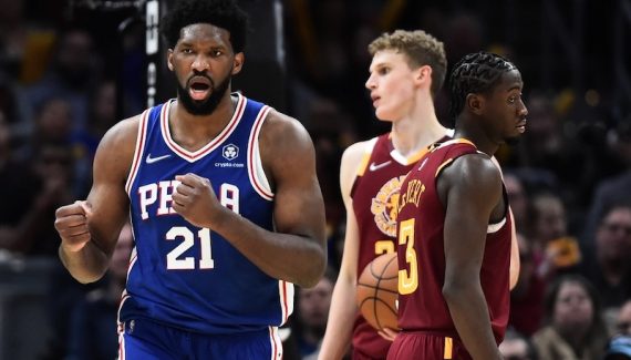Avec 15 secondes à jouer et seulement un point de retard (106-107), Darius Garland a cru bon de se rapprocher du cercle pour finir en « floater ». Malheureusement pour son équipe et lui, il a manqué son geste face à Joel Embiid devant lequel il a fini par tomber au sol après un contact.