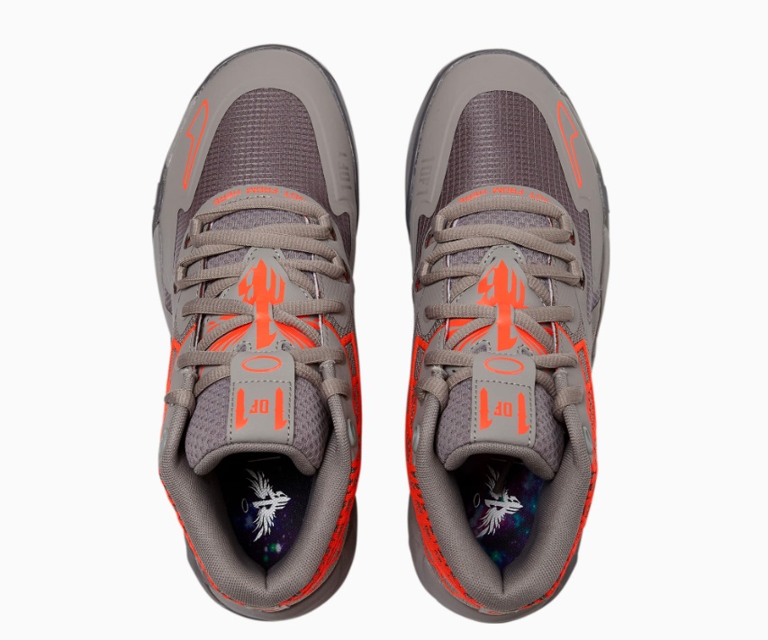 « La MB.01 a été conçue conjointement avec Puma, avec la volonté d’incorporer mon style personnel sur toute la chaussure, que ce soit sur les choix de couleurs audacieux, ou ses détails uniques et complexes, comme le contour de flammes descendant du col qui s’aligne sur mon tatouage en forme de fusée au niveau de ma cheville », a-t-il expliqué, avant de revenir sur les inscriptions « Not from here » sur la languette et « Rare » sous la semelle extérieure. « Je vis selon la devise “One of One”, ce qui signifie que je ne suis pas comme tout le monde. Je me distingue par ma différence et je suis toujours moi-même à 100%. Cette devise a vraiment été l’inspiration derrière la MB.01. Je voulais créer un type de basket différent, un modèle qui n’est “pas d’ici”, pour refléter mon parcours au basket jusqu’à présent. La MB.01 est aussi unique que je le suis ! ».