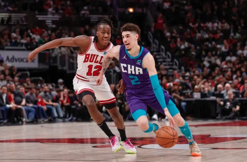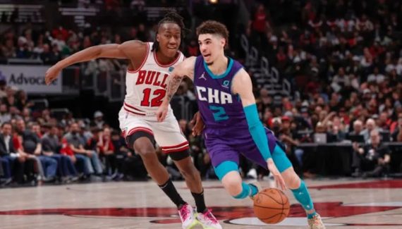Cette partie a démarré par un festival, celui de LaMelo Ball qui a pris des airs (seulement des airs…) de Stephen Curry en dégainant à tout va à 3-points, y compris en première intention en transition. Le meneur a enfilé trois paniers primés dès le premier quart-temps, puis deux autres dans le second au point de pousser DeMar DeRozan à sortir sur lui alors qu’il envoyait… depuis le logo des Bulls en déséquilibre.