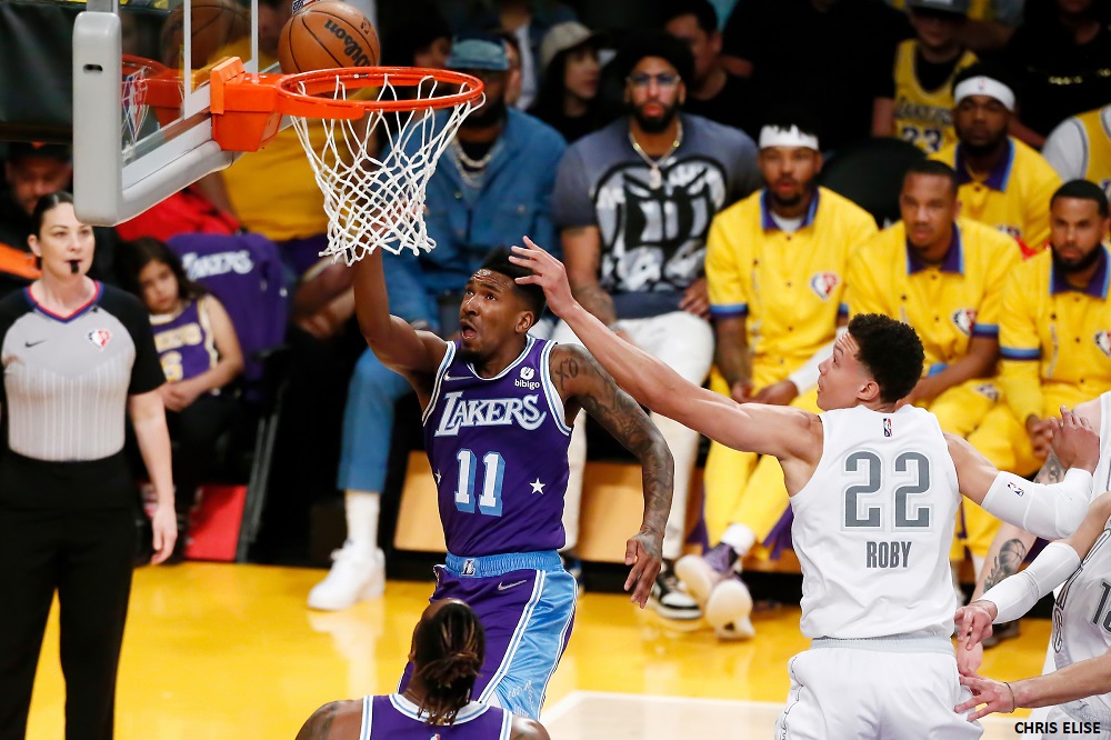 Sans LeBron James, Anthony Davis, Russell Westbrook et Carmelo Anthony, les Lakers devaient trouver des points ailleurs pour ce dernier match de la saison à domicile. Chacun a participé puisque huit joueurs ont terminé avec 11 points ou plus.