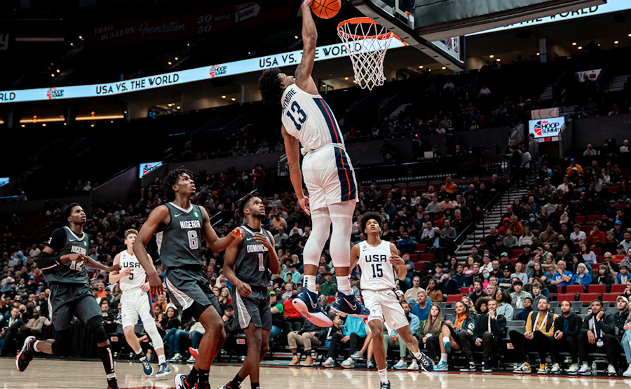 Les scouts et les GM NBA s’étaient donnés rendez-vous à Portland vendredi pour assister au Hoop Summit, cette sorte de All-Star Game des lycées, entre l’équipe U19 des Etats-Unis et une sélection des meilleurs joueurs étrangers de cette classe d’âge. Comme en 2019, date de la dernière édition, les Américains s’imposent, et plutôt dans les grandes largeurs : 102-80.