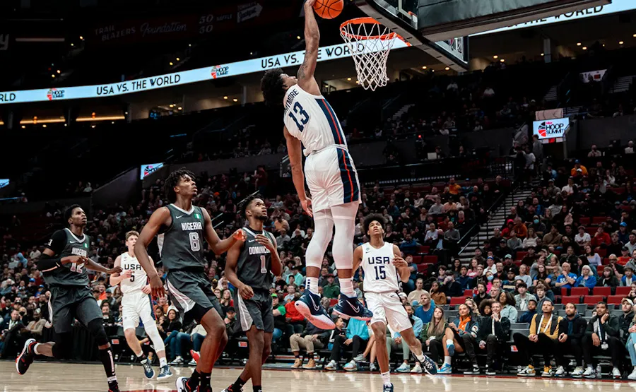 Les scouts et les GM NBA s'étaient donnés rendez-vous à Portland vendredi pour assister au Hoop Summit, cette sorte de All-Star Game des lycées, entre l'équipe U19 des Etats-Unis et une sélection des meilleurs joueurs étrangers de cette classe d'âge. Comme en 2019, date de la dernière édition, les Américains s'imposent, et plutôt dans les grandes largeurs : 102-80.