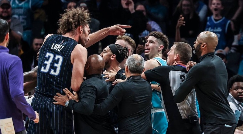 Sans surprise, la NBA a décidé de sanctionner financièrement les trois protagonistes du début de bagarre générale entre les Hornets et le Magic. À savoir Montrezl Harrell côté Charlotte, ainsi que Robin Lopez et Admiral Schofield côté Orlando, qui avaient tous été expulsés par les arbitres, jeudi soir.