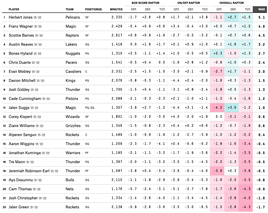 Ce n’est pas pour rien que les statistiques avancées adorent Herb Jones. Selon le système RAPTOR de FiveThirtyEight, il est carrément le rookie qui a rapporté le plus de victoires à son équipe (5.1). Ce chiffre est calculé en remplaçant les données du joueur dont on veut mesurer l’impact par celles du joueur “moyen” de NBA.