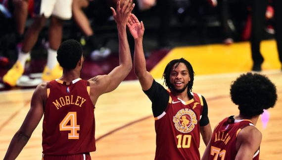 Les titulaires : D. Garland, I. Okoro, C. LeVert, L. Markkanen, E. Mobley.