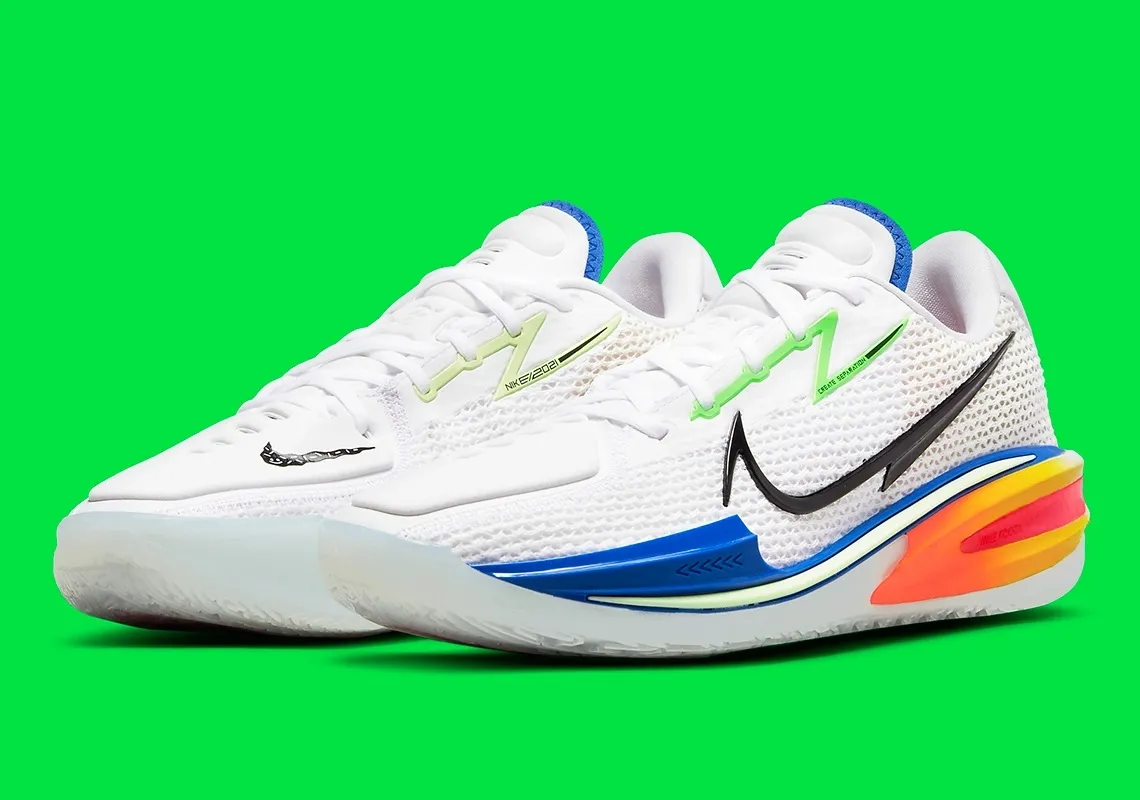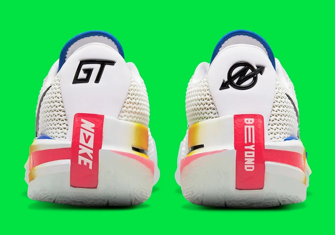 Celui avec la tige blanche se distingue par des touches d’orange, vert, bleu et rose tandis que quelques finitions comme les contours du « Swoosh » sur l’empeigne, ressortent en noir.