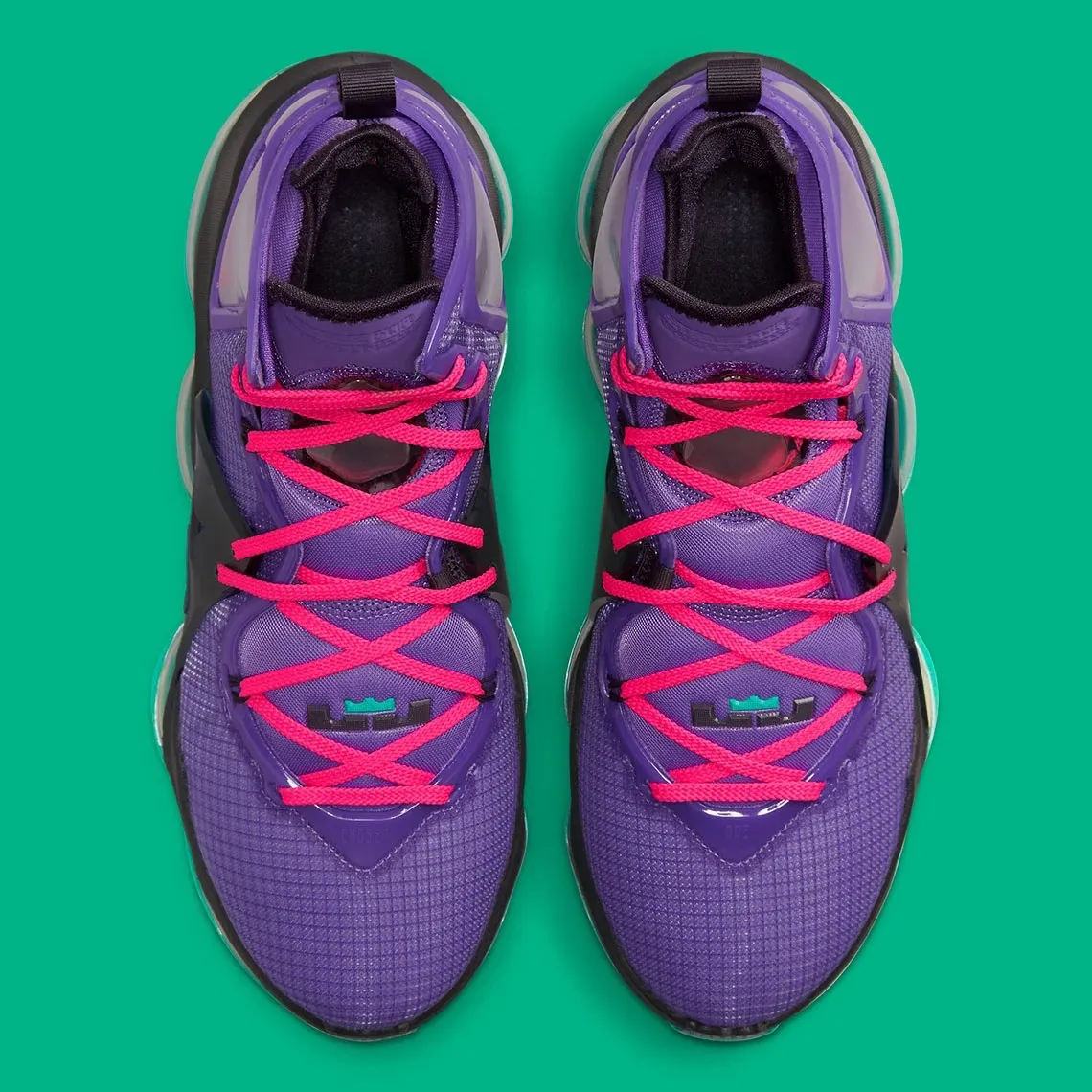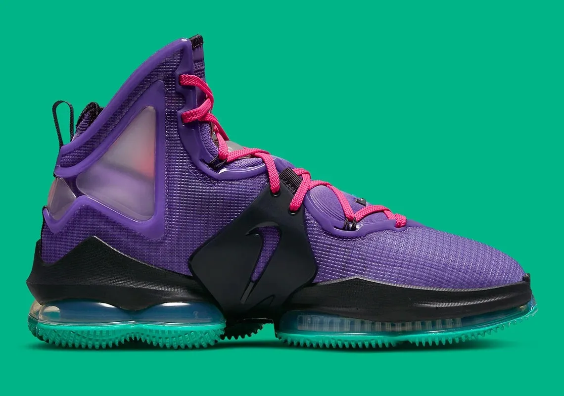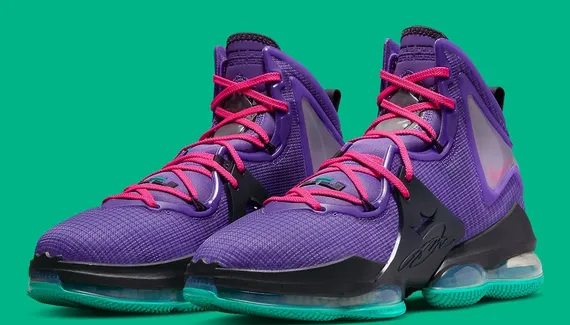 Retour aux sources pour ce nouveaux coloris de la LeBron 19 avec une inspiration tirée du maillot du Goon Squad présent dans Space Jam, dont le deuxième volet avait servi de lancement à la toute dernière chaussure signature de LeBron James.