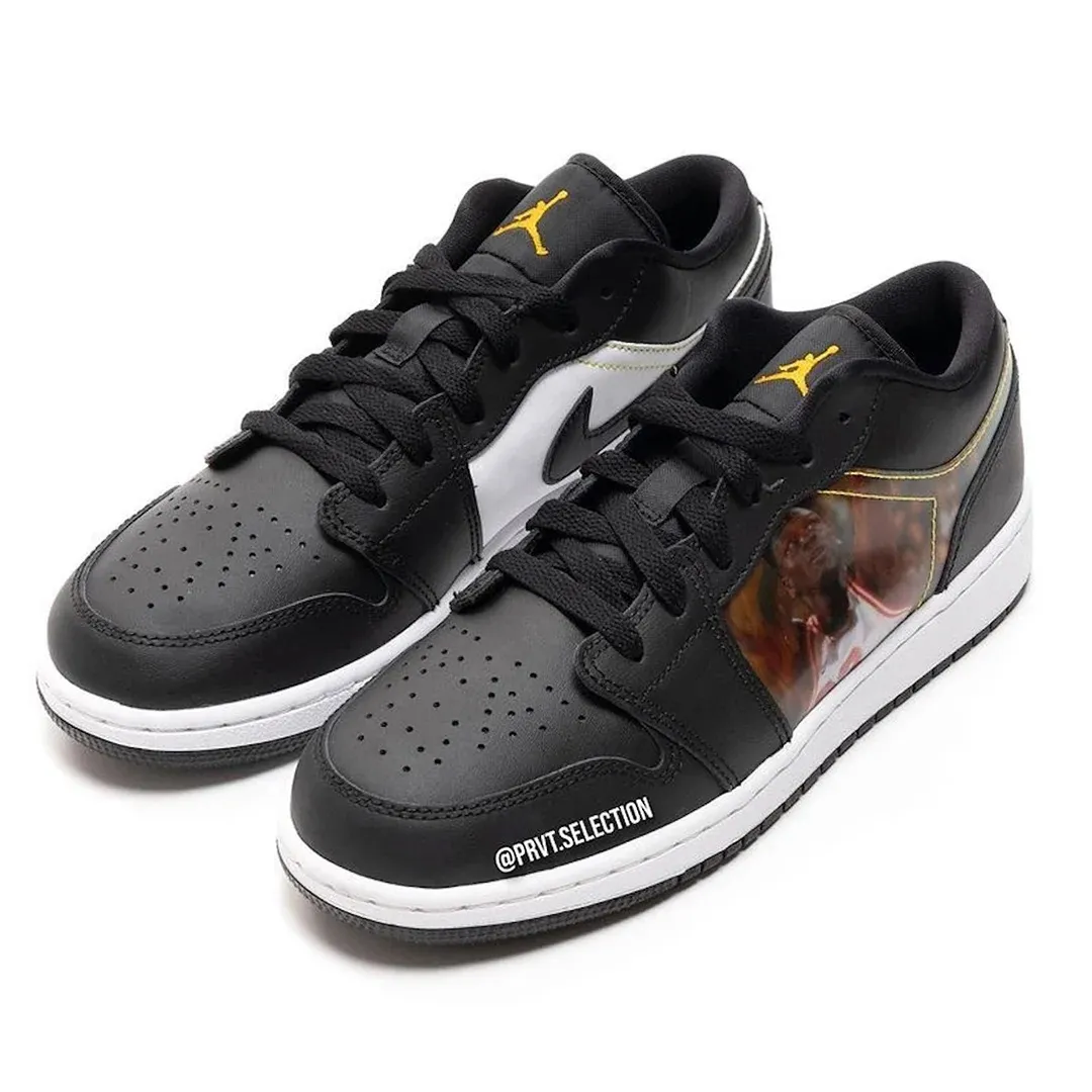 Voilà une Air Jordan 1 Low qui pourrait bien attiser les convoitises au cours des prochains mois. Le modèle rétro remet au goût du jour le principe des images holographiques, faisant ainsi apparaître Michael Jordan différemment selon l'angle de vue sur l'empeigne latérale.