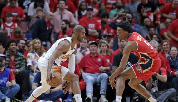 — Brandon Ingram et CJ McCollum ont tout essayé. Difficile de reprocher grand chose à la paire Ingram/McCollum, qui a clairement fait de son mieux pour donner l’avantage aux Pelicans dans ce premier tour. Il n’empêche que, souvent esseulée et plombée par le non-match de Jonas Valanciunas, elle a dû déposer les armes devant les Suns, non sans lutter jusque dans les derniers instants. Impressionnants de maîtrise collective dans les moments chauds, les joueurs de Phoenix ont néanmoins réussi à calmer les ardeurs du tandem adverse, qui s’imaginait bien jouer un vilain tour aux visiteurs. Comme dans le Game 2…