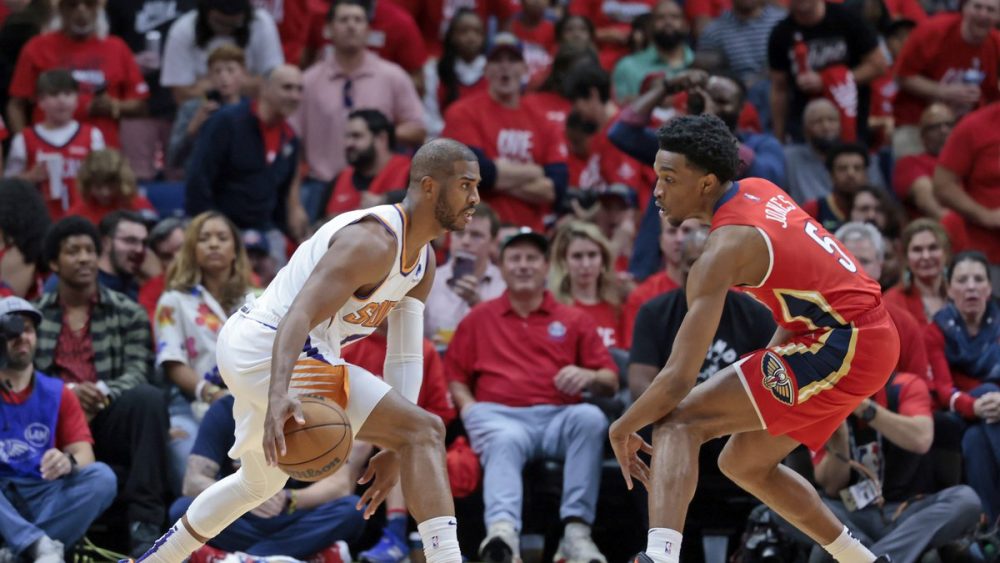 — Sans Devin Booker, Chris Paul et Deandre Ayton ont pris le relais. En l’absence de l’arrière All-Star, le meneur et le pivot des Suns étaient pour le moins attendus : ils n’ont pas manqué de répondre présent, avec un double-double chacun. Auteur de son record de points en playoffs, Deandre Ayton a montré l’exemple comme point d’ancrage à l’intérieur durant trois quart-temps, avec son toucher et sa finition près du cercle, sur des caviars du maestro Paul. “CP3”, justement, s’est quant à lui chargé de tuer les Pelicans dans le dernier acte, avec sa maîtrise habituelle dans le money-time, et notamment à mi-distance. Un travail d’équipe.