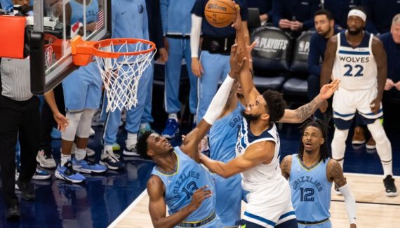 Les Wolves sont devant (33-28) après un premier quart-temps très long, coupé par les fautes et plombé par le déchet des deux équipes. En deuxième quart-temps, les Wolves passent un 17-1 et les Grizzlies n’y sont pas. En trois minutes, ils se retrouvent à quinze points. Ces derniers répondent avec un 10-0 et Ja Morant inscrit quatre points, ses premiers du match, dans les dernières secondes de la première période. Memphis n’est finalement pas largué (60-56).