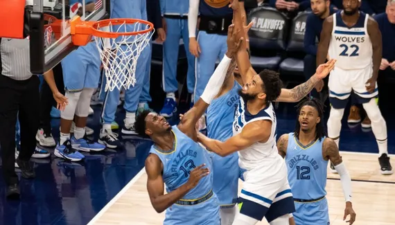 Comme si l'effondrement du dernier match n'avait pas existé. Les Wolves ont commencé le Game 4 comme ils avaient entamé le Game 3 : avec intensité et en dominant les Grizzlies. Karl-Anthony Towns donne le ton. Mais la vague fut moins forte, avec un 6-0 rapidement refroidi par Desmond Bane. Le joueur de Memphis est bouillant et enchaîne les paniers derrière l'arc. La salle n'est pas loin de s'éteindre totalement quand Anthony Edwards rejoint les vestiaires, après six minutes seulement. L'arrière s'est fait mal au genou, tout seul. Heureusement, il revient quelques instants après.
