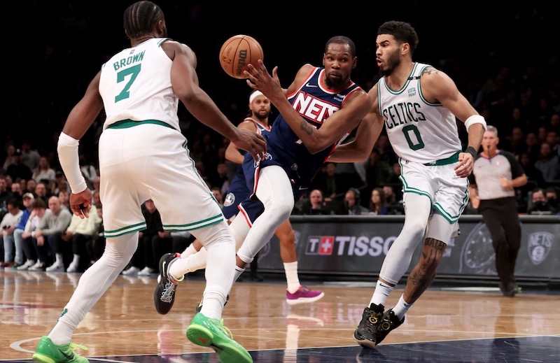 Cet écart s’est creusé dans le second quart-temps avec une série de paniers inscrits par Jayson Tatum. Ce dernier se montrait aussi altruiste en trouvant à deux reprises Grant Williams, laissé tout seul dans le corner. Les Celtics ont donné le sentiment de mieux faire tourner la balle alors que les Nets s’en sont davantage remis aux exploits, à la finition ou à la création pour trouver Nic Claxton justement, de Kevin Durant. Celui-ci affichait déjà 20 points à la pause, tandis que Kyrie Irving était très effacé, mais Brooklyn était toujours mené (50-58).