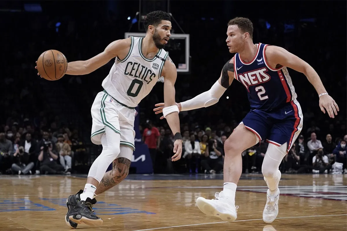 A l'occasion du Game 4 sur le parquet des Nets lors de l'élimination de Brooklyn par les Celtics (4-0), Jayson Tatum a cette fois porté une AJ 36 que l'on pourrait baptiser « Black Mamba », en noir et or avec une tige en peau de serpent.