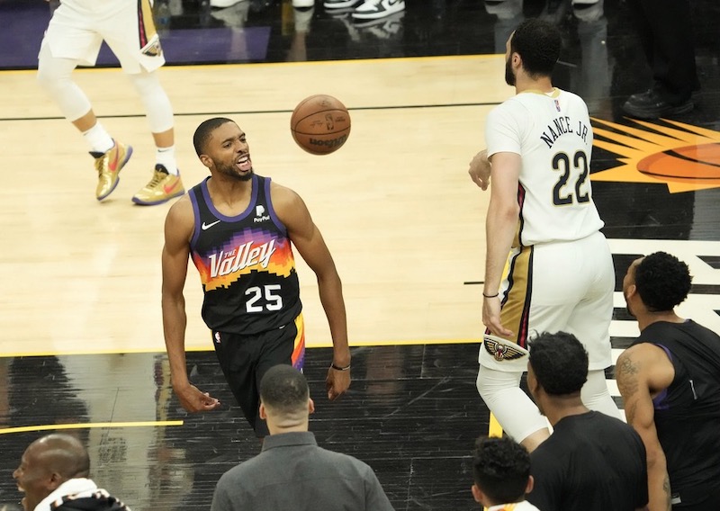 Fatigué Mikal Bridges ? « Je suis gonflé à bloc, prêt à jouer demain. Je suis là à me gratter le genou rien qu’en en parlant ! », rétorque l’ailier des Suns, sous les yeux approbateurs de Deandre Ayton. Et dire que celui-ci vient pourtant de disputer… 47 minutes du cinquième match face aux Pelicans.