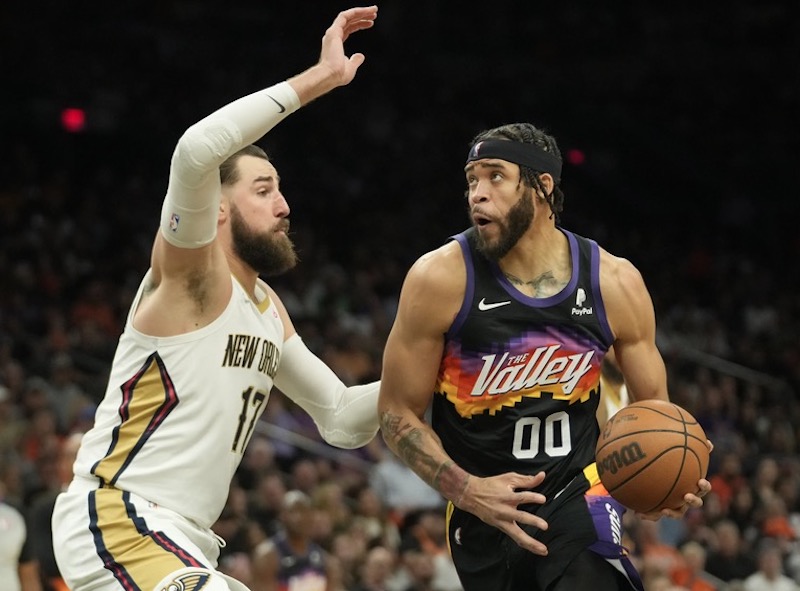 C’était en tout cas la volonté de Monty Williams de grandir son cinq face aux Pelicans dont la paire de titulaires, Jonas Valanciunas et Jaxson Hayes est plus grande que Deandre Ayton – Cameron Johnson. C’est aussi la raison pour laquelle Bismack Biyombo a disputé huit minutes de jeu (seulement une passe et trois fautes) alors qu’il n’avait fait que deux encore plus brèves apparitions jusqu’ici.