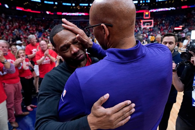 S’il fallait une belle illustration des liens existants entre Willie Green et les Suns, la voici. La fin de rencontre du Game 6, remporté par les Suns finalement qualifiés en demi-finale de conférence, a donné lieu à une scène riche en émotions. Le coach des Pelicans a commencé par une accolade avec son ancien mentor, Monty Williams.