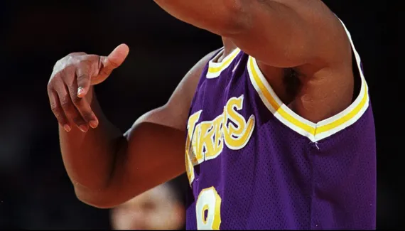 Il a été porté plusieurs fois par Bryant lors de sa saison rookie, en 1996/1997, notamment en playoffs contre Utah. Une pièce rare et ancienne puisqu'on célébrait les 50 ans de la NBA.