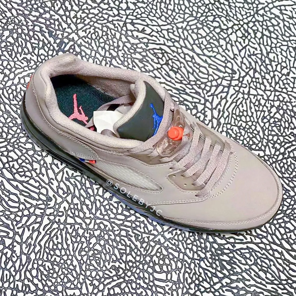 Les paires estampillées « Jordan Brand x PSG » représentent désormais un événement des deux côtés de l’Atlantique. Cette fois, c’est une Air Jordan 5 Low qui va être customisée en hommage au club de foot parisien et dont quelques clichés ont fuité sur la toile.