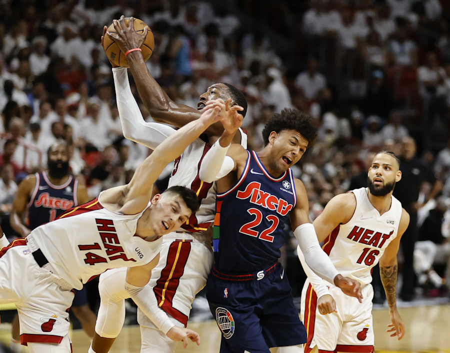 – La domination du Heat au rebond. Comme on pouvait s’y attendre, l’absence de Joel Embiid a plombé Philly sur plusieurs aspects, dont la lutte au rebond. Miami en a ainsi gobé dix de plus (47-37) et a fait mal aux Sixers avec ses 15 rebonds offensifs. PJ Tucker et Bam Adebayo ont notamment eu le champ libre pour dicter leur loi dans la peinture.