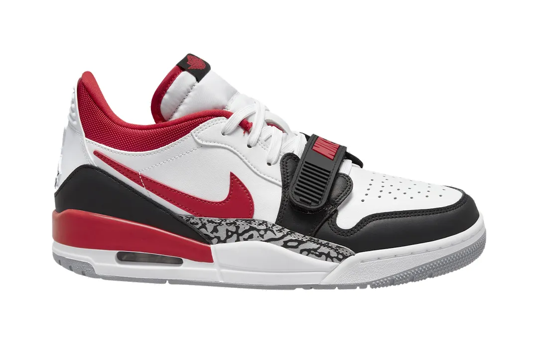 Inspirée de la Air Jordan 1, la Air Jordan 3 et la Nike Air Alpha Force Low avec sa sangle recouvrant la partie avant des lacets, la Jordan Legacy 312 initialement sortie en 2018 est de retour en 2022.