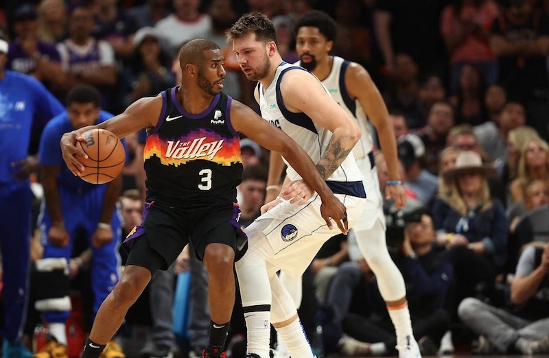 Alors que son équipe ne menait que d’une possession à l’entame de la dernière période, « CP3 » a commencé par un panier primé devant Jalen Brunson. Il a enchaîné par un « drive » main gauche devant Luka Doncic, puis un « fadeaway » tête de raquette devant Maxi Kleber, puis un « up and under » pour faire sauter Reggie Bullock…