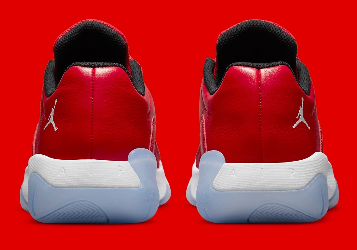 En 2021, la Air Jordan 11 s’est déclinée en « CMFT Low » et reprend aujourd’hui ce coloris emblématique, avec la base avant de la tige en cuir verni rouge, une simple touche de blanc sur les deux logos « Jumpman » et un col intérieur noir. La semelle se présente pour sa part avec son habituel mariage de blanc et de bleu glacé.