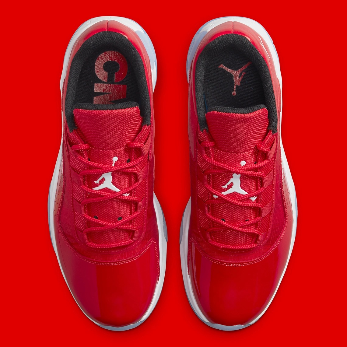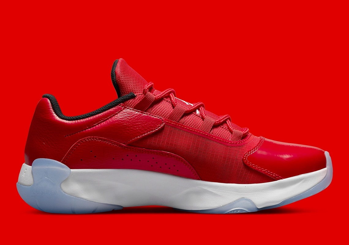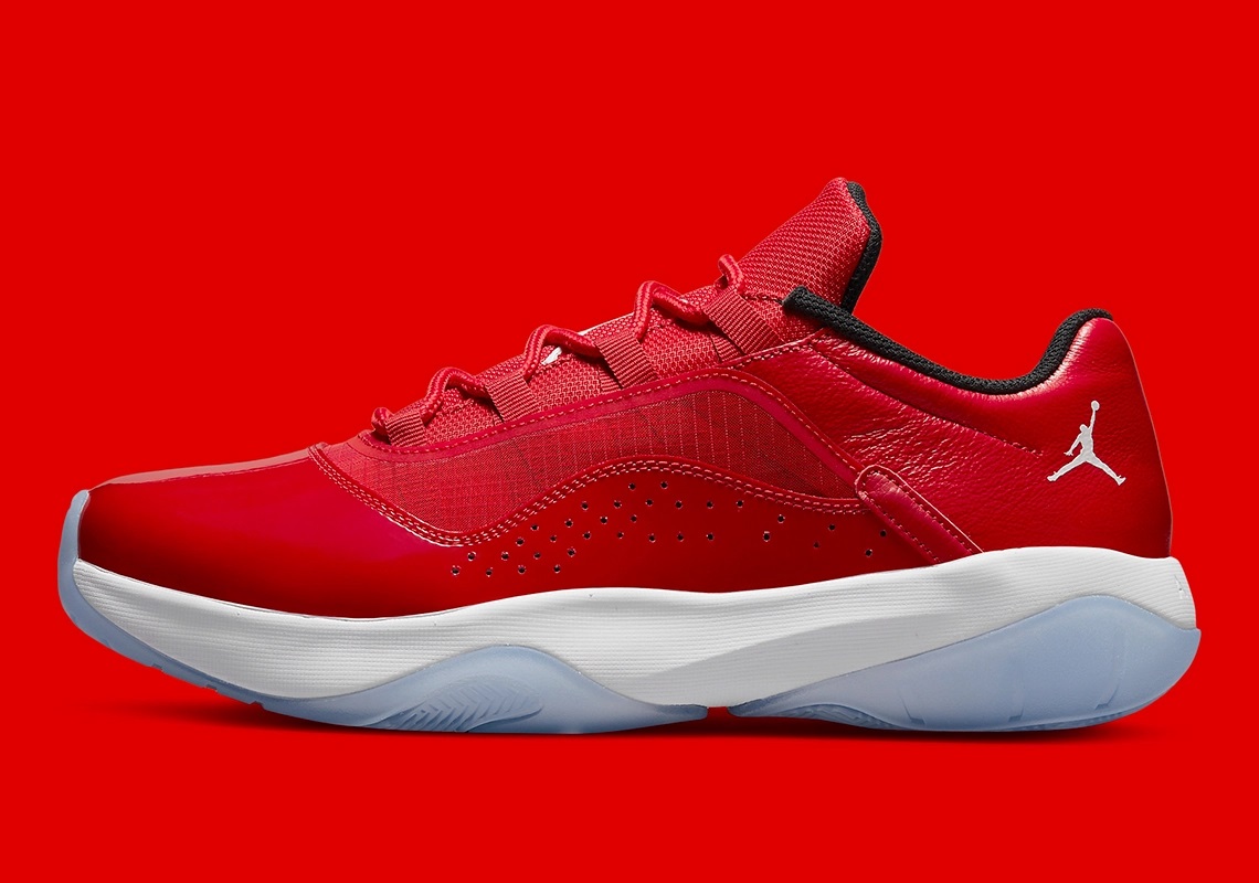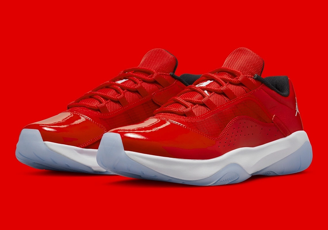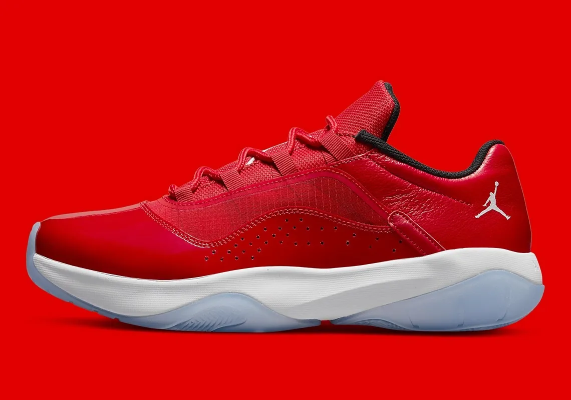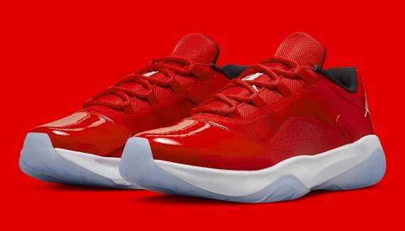En 2021, la Air Jordan 11 s’est déclinée en « CMFT Low » et reprend aujourd’hui ce coloris emblématique, avec la base avant de la tige en cuir verni rouge, une simple touche de blanc sur les deux logos « Jumpman » et un col intérieur noir. La semelle se présente pour sa part avec son habituel mariage de blanc et de bleu glacé.