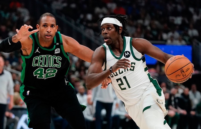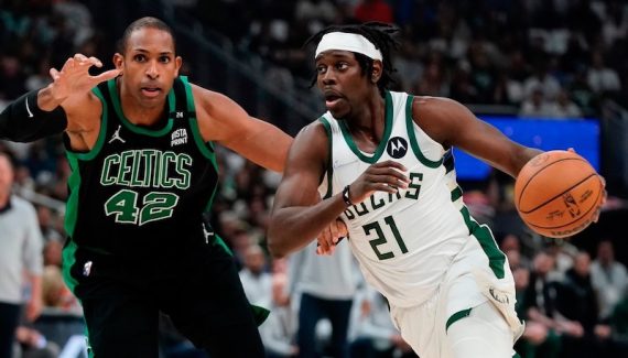 Une passe en « alley-oop » vers Brook Lopez, un « spin move » devant Grant Williams avant une élégante finition main gauche, puis un panier à 3-points bien dans le rythme après une remontée de balle. Hormis une finition plutôt simple ratée au cercle dans les premières minutes, Jrue Holiday avait très bien lancé son Game 4 face aux Celtics.