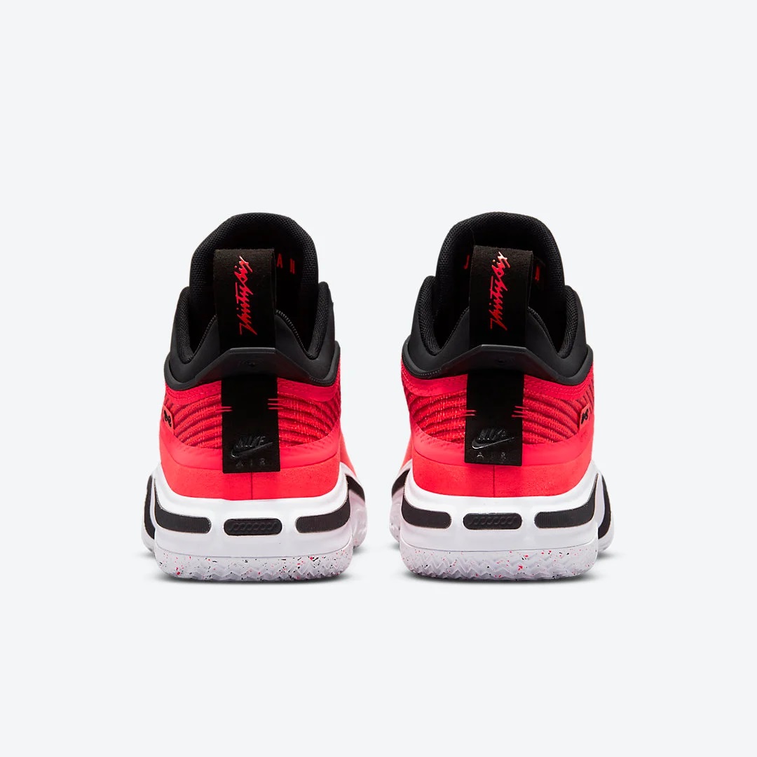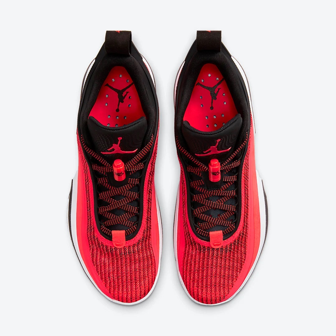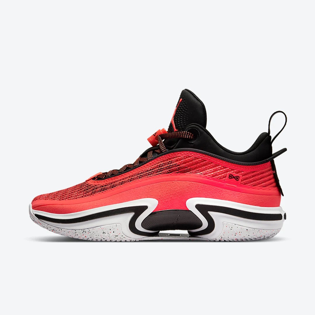 Ce premier coloris « Infrared 23 » est similaire à celui récemment dévoilé de la Air Jordan 36, avec une tige majoritairement rouge, un tissage Leno en rouge et noir et un gros « Jumpman » rouge sur fond noir sur la languette.