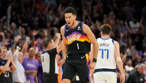 En face, les Suns ont été plus en difficulté derrière l'arc, à l'instar d'une séquence terminée par trois ratés sur la même possession, mais s'accrochaient tout de même au score. Y compris lorsque Davis Bertans a réalisé une nouvelle entrée en jeu marquante, avec notamment une action à 3+1 après un « catch-and-shoot » (30-37). Sous l'impulsion de Devin Booker (16 points à la pause), les Suns sont parvenus à reprendre une courte avance à la fin d'une première période (49-46) où les Mavs de Luka Doncic (18 points et 7 rebonds) n'ont shooté qu'à 40% de réussite, contre 48% pour leurs adversaires.
