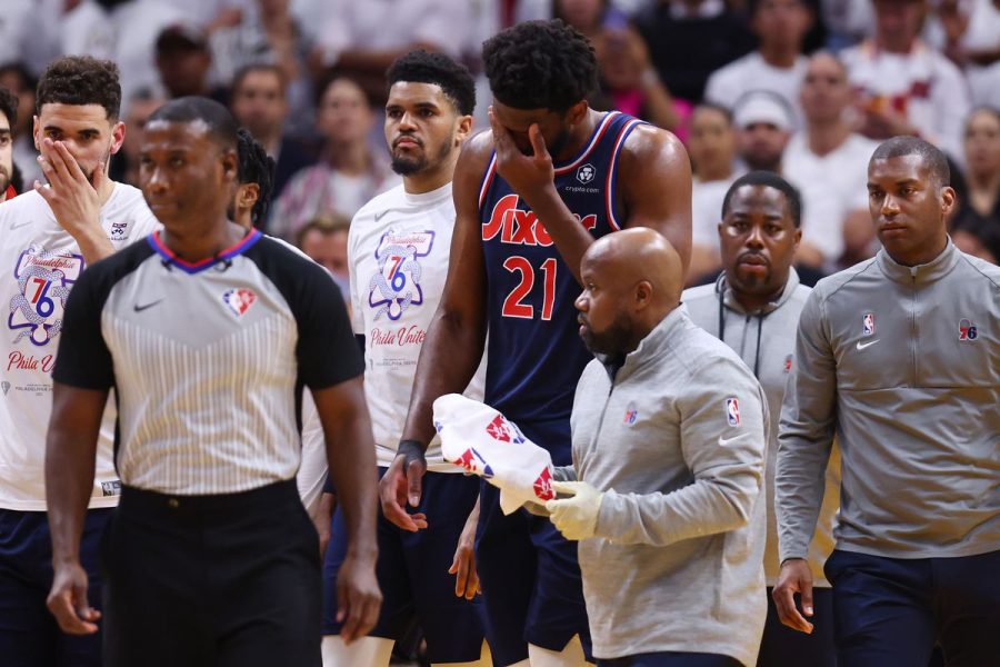 Pour Joel Embiid, ces playoffs 2022 sont douloureux, littéralement. Blessé au pouce droit durant le Game 3 de la série contre Toronto (déchirure d’un ligament), puis au visage durant le Game 6 (fracture de l’os frontal), le pivot des 76ers doit ainsi composer avec la douleur depuis plusieurs semaines.