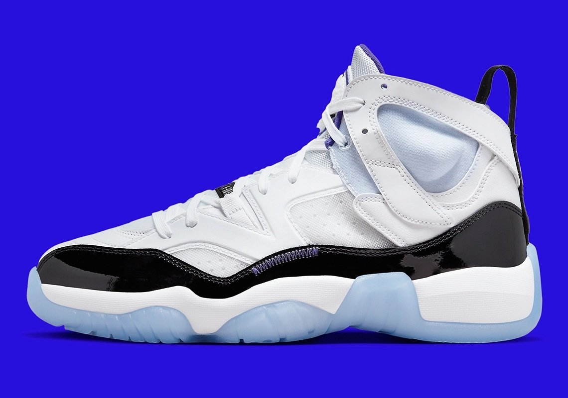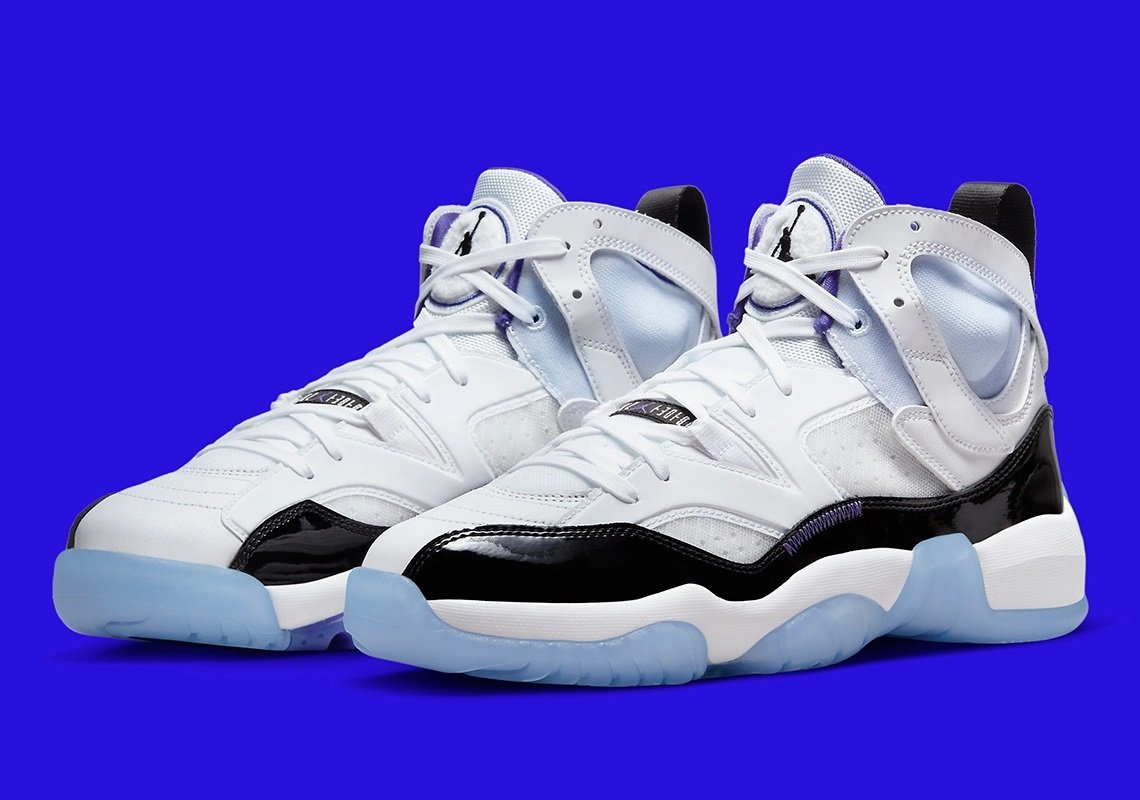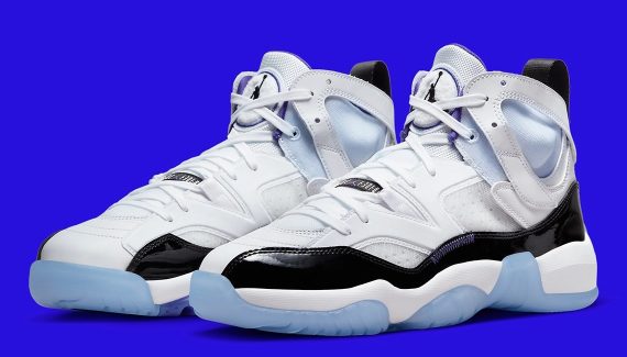 On y retrouve pêle-mêle la base en cuir verni de la Air Jordan 11, la languette de la Air Jordan 8 ou encore une touche d’Air Jordan 7 au niveau de la cheville. D’abord présenté en tailles enfants, la « Two Trey » (pour 2 et 3, les numéros de Michael Jordan) va finalement être commercialisée en taille adultes, ici sous les coloris classique « Bred » et « Concord ».