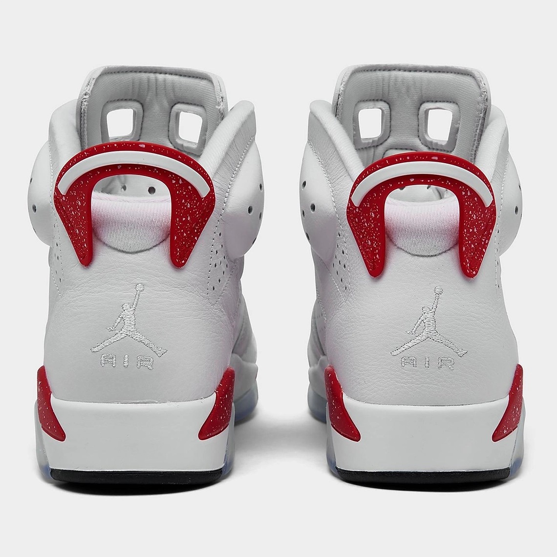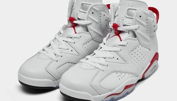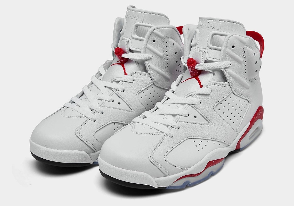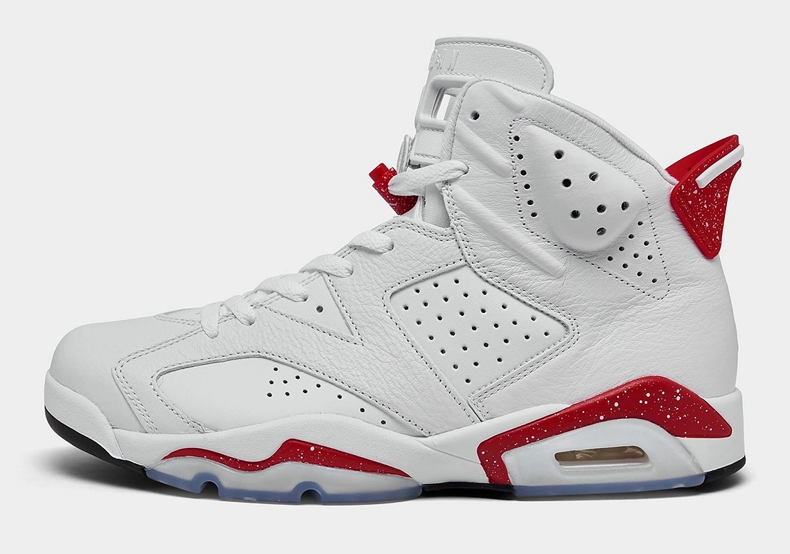 La prochaine Air Jordan 6 Oreo transgresse un peu les règles avec une tige en cuir blanc ajustée de touches “d’University red” tachetées de blanc, sur la tirette, le « Jumpman » recouvrant les lacets et la semelle intermédiaire.