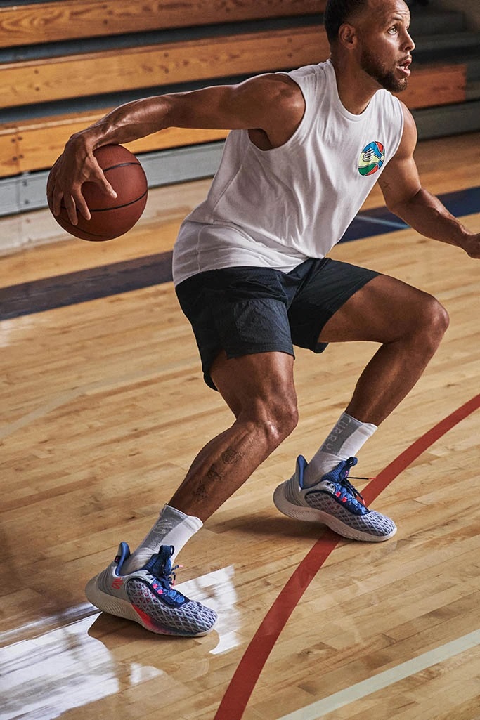 En conception depuis 2019 et repoussée suite suite à la pandémie de Covid-19, la Curry Flow 9 a finalement vu le jour cette saison. Le modèle ressemble à première vue à une version 2.0 de la Curry 8, avec sa mousse UA Flow qui donne l’impression de bonifier les appuis vifs et légers et confère une adhérence optimale, avec une empeigne UA Warp qui accentue cette sensation de légèreté.