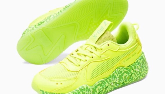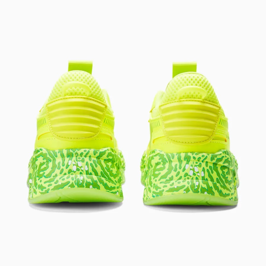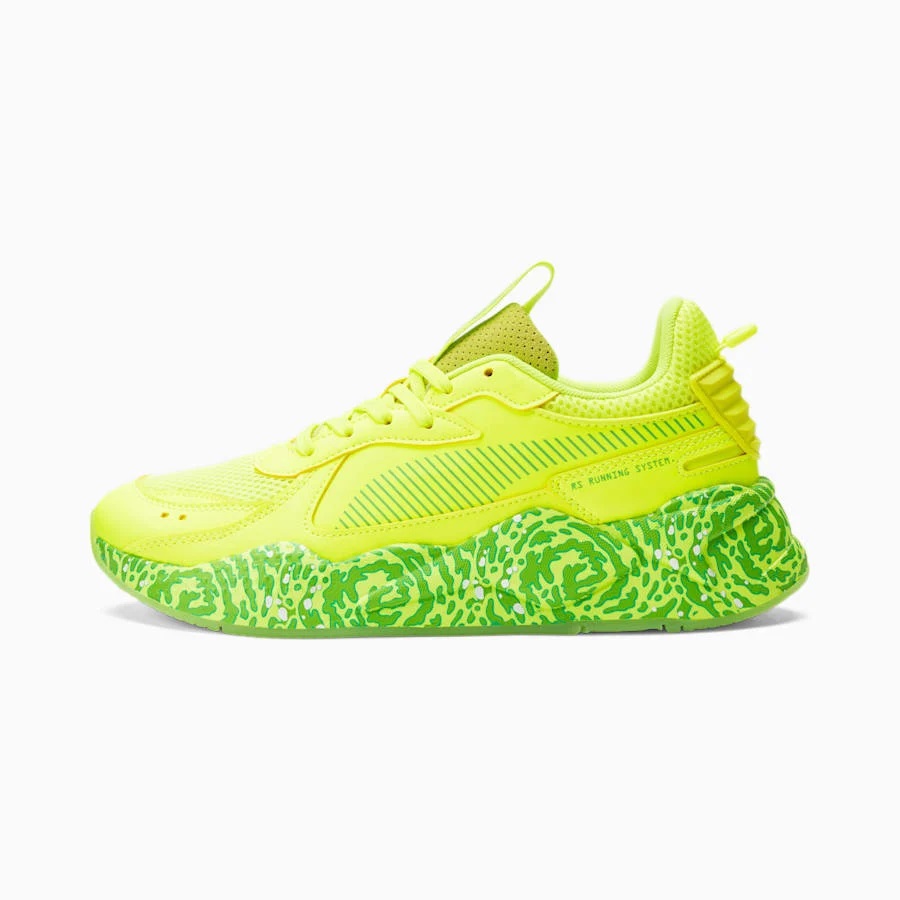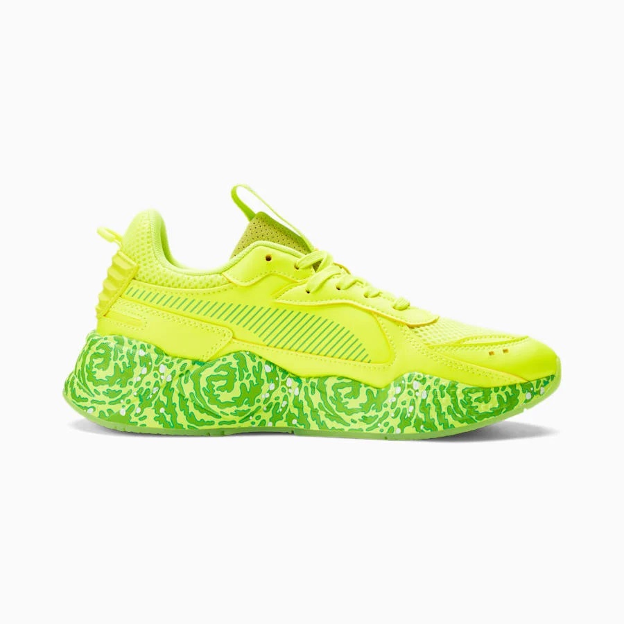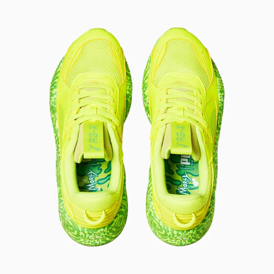 Puma a décidé de poursuivre la collaboration en utilisant la RS-X pour imaginer un nouveau coloris « Rick et Morty ». Celui-ci est cette fois principalement recouvert de deux teintes de vert (clair et plus foncé), avec la composition de la semelle intermédiaire en clin d’œil à la série. Comme sur la MB.01, les visages de Rick et Morty dessinés sur la partie intérieure de chaque languette.