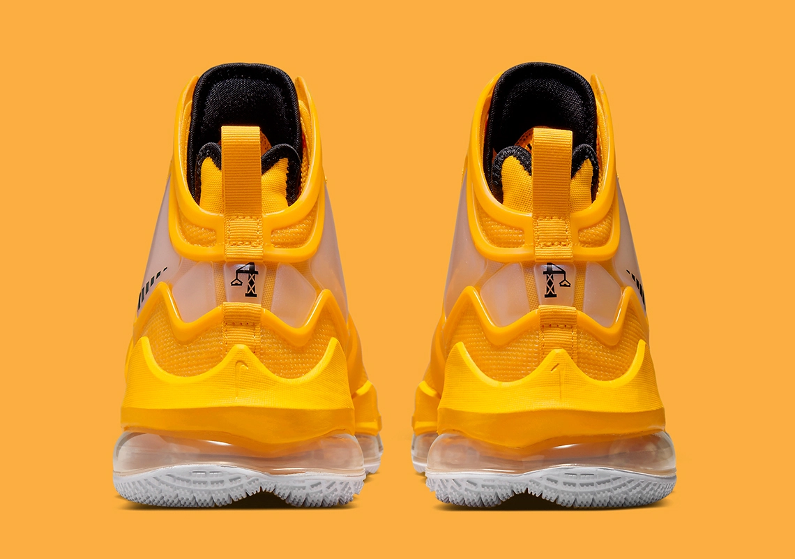Non, ce coloris « Hard Hat » n’est pas un nouvel hommage aux Lakers avec sa tige entièrement jaune. Le « chapeau dur » est en fait une référence aux casques de chantier de la même couleur. Le thème est plutôt original, la paire étant assortie de finitions et de logos en noir.