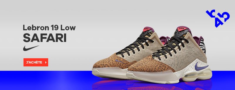 Commande sur basket4ballers.com la chaussure Nike Lebron 19 Low Safari, la version « Animal Pack » de la LeBron 19 low associe un imprimé léopard à l’avant et zèbre à l’arrière. Livraison et retour offert.