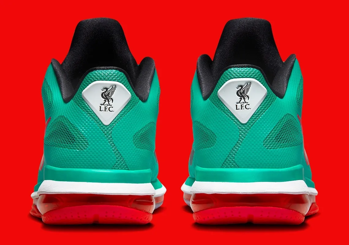Même si Liverpool a perdu, Nike avait prévu un petit clin d’œil à l’occasion de cette soirée spéciale, dévoilant une LeBron 9 Low « Reverse Liverpool ». Pourquoi « Reverse » ? Parce que la majeure partie du modèle ressort en vert, l’autre couleur du club de la Mersey, et non en rouge.