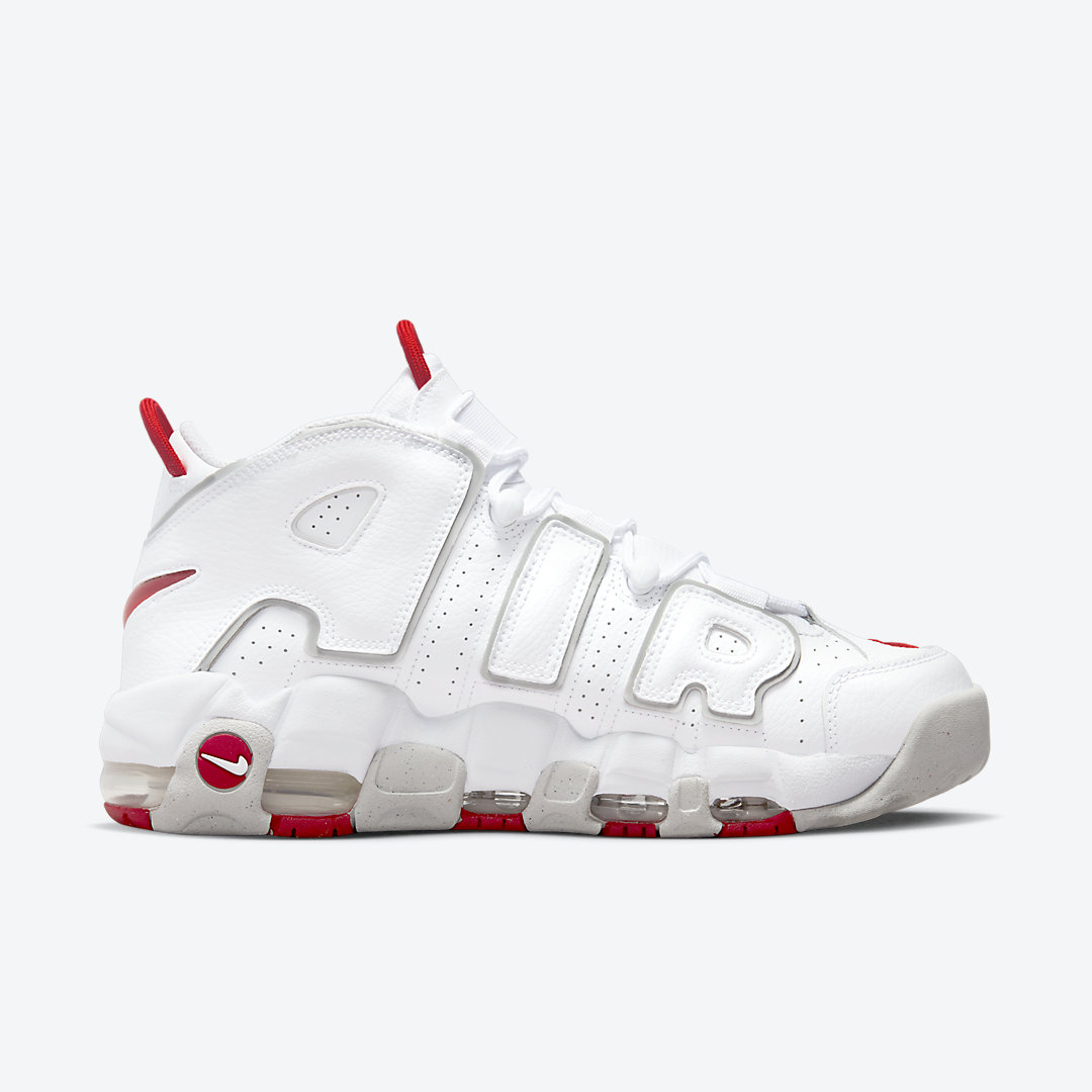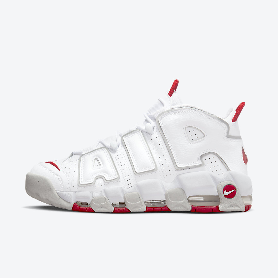 Modèle emblématique des années 90, portée notamment par Scottie Pippen, la Nike Air More Uptempo effectue un retour aux sources avec ce coloris « Bulls » plutôt classique.
