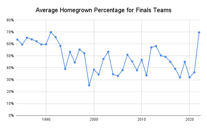Toujours est-il que, si l'on jette un coup d'oeil dans le passé, on constate que ces Finals 2022 entre Golden State et Boston font partie des plus “stables” de toutes, avec 69.7% des minutes des deux équipes qui reviennent à des joueurs qui n'ont jamais évolué ailleurs.
